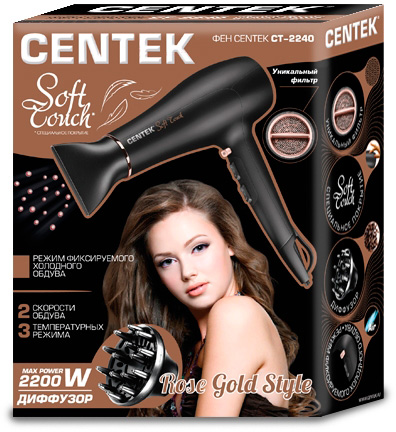 Фен Centek CT-2240 (черно/золотой)